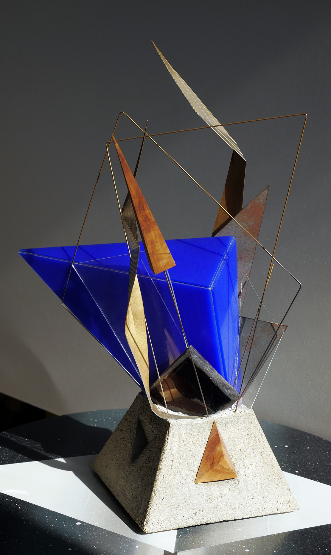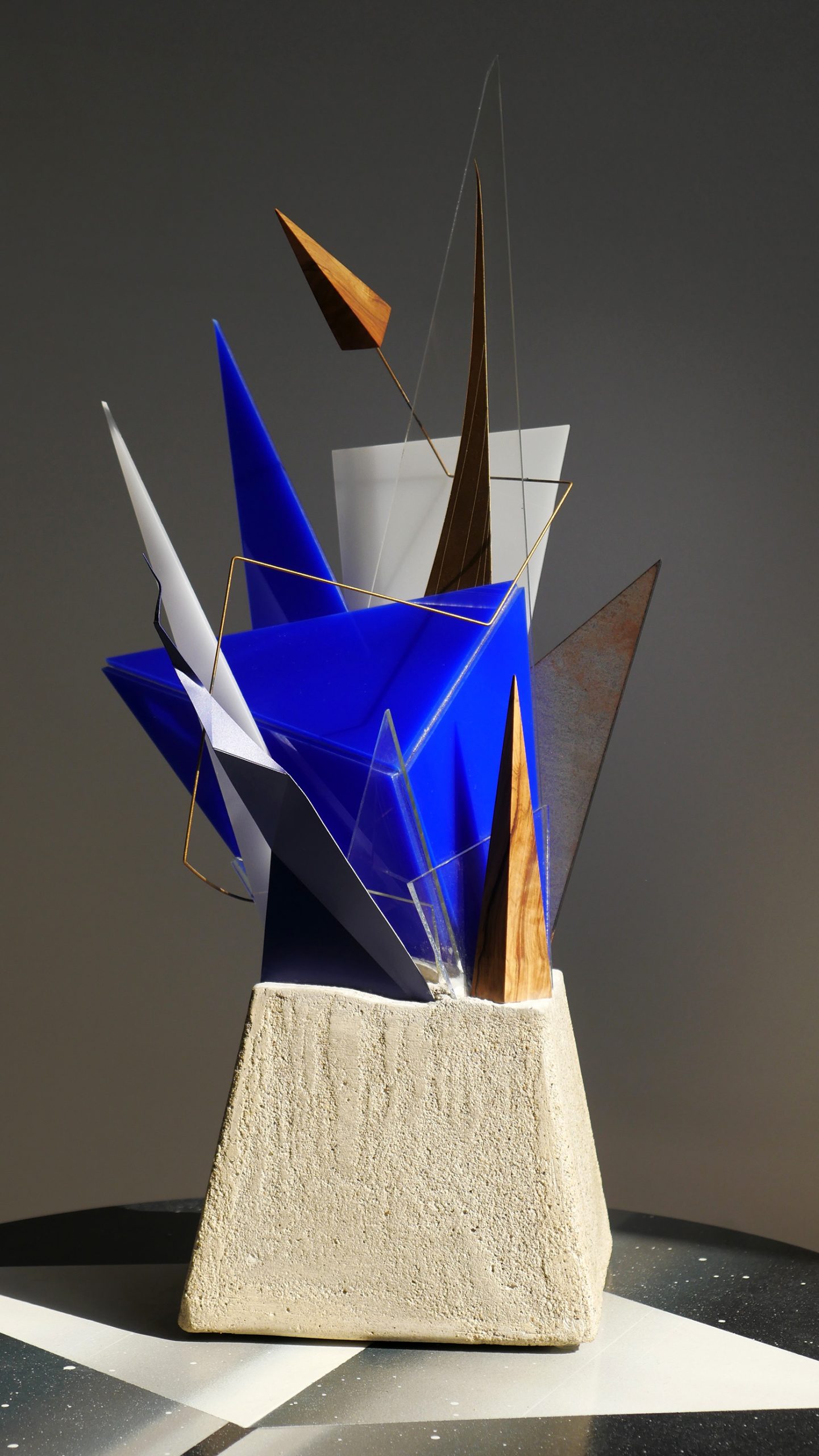 Jan27 Ascension n°2 Posted By : admin@laurent/ 0 comments / Dans : « Ascension 2 » « Ascension 1 » – 43(h) 14 (l) 14(p) cm – acier, altuglas, aluminium, bois d’olivier, ciment, peinture aérosol, verre. Collaboration avec David Cavard – octobre 2019. Date du projetoctobre 2019CatégorieSculpturesShare This