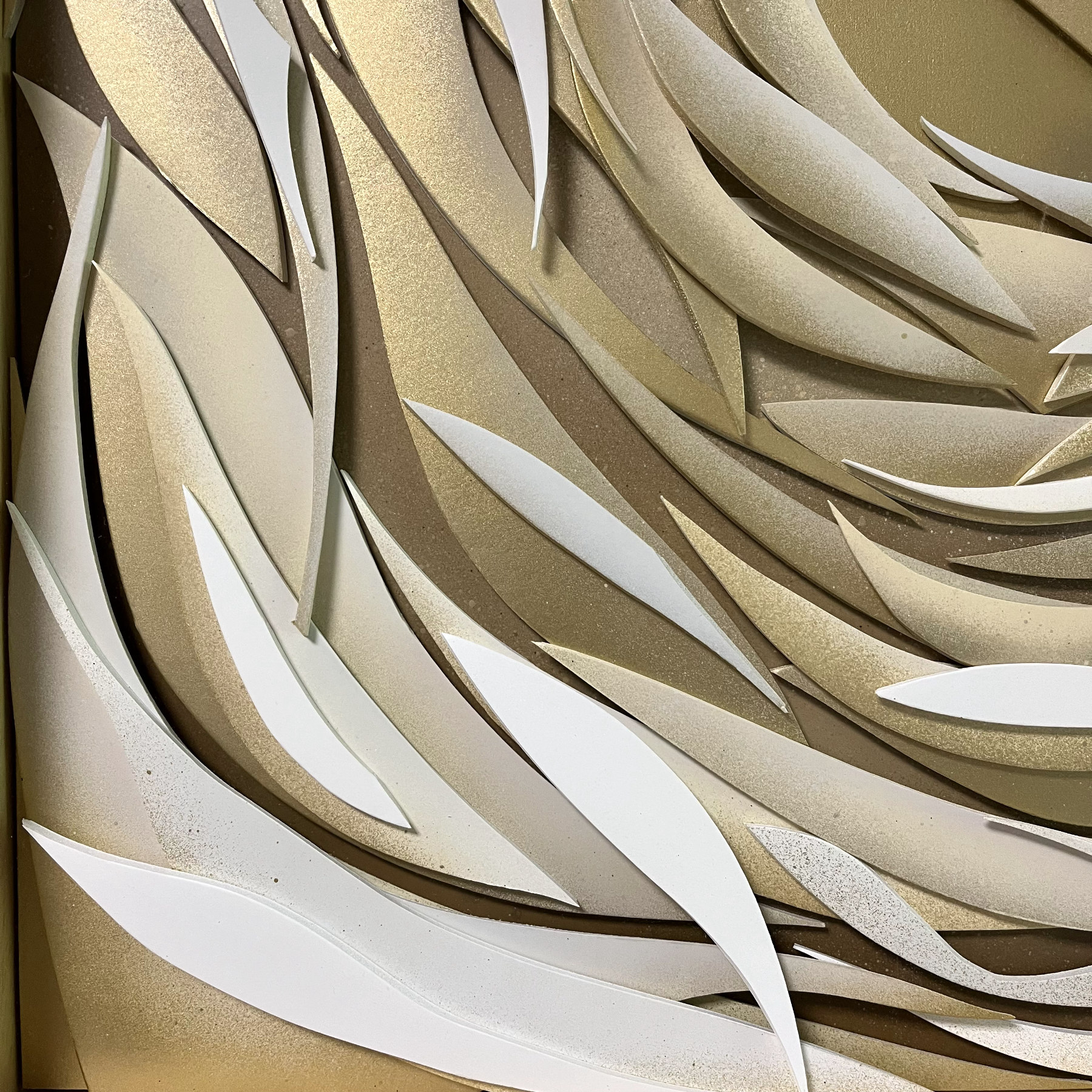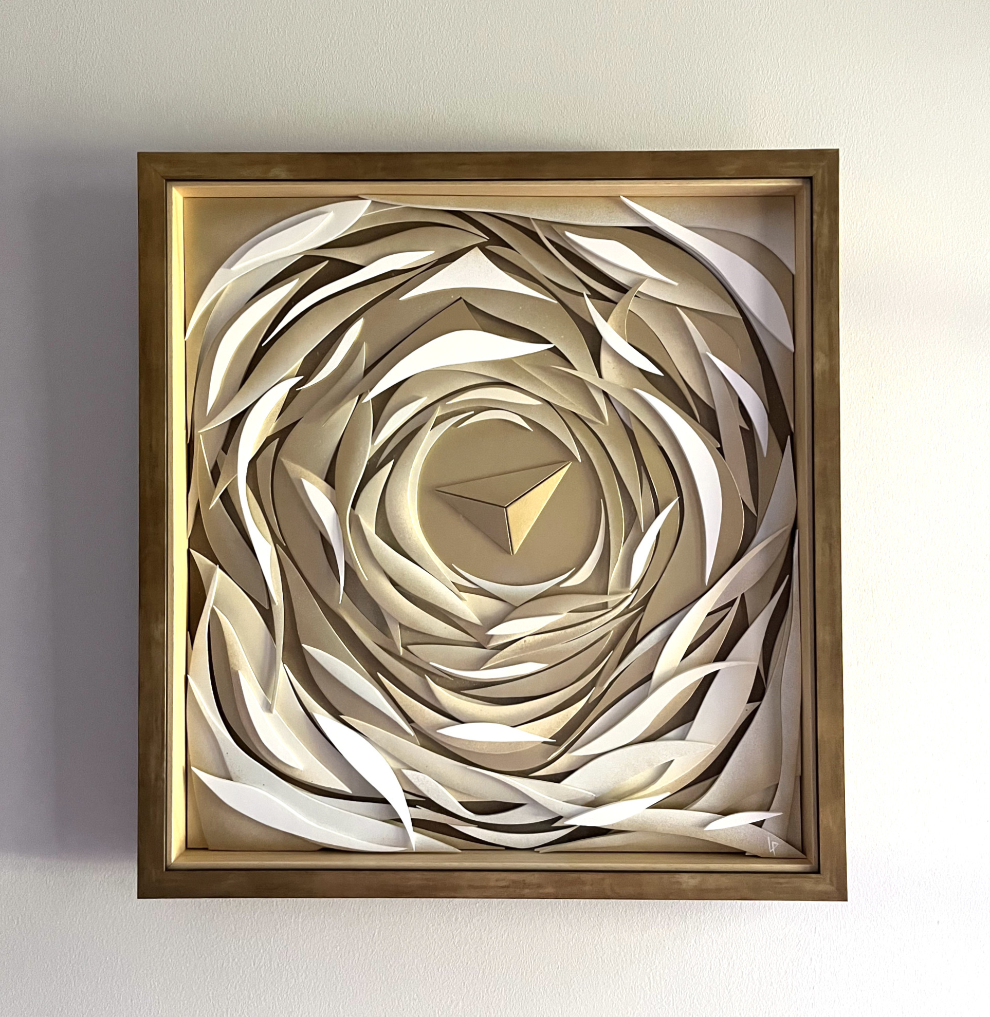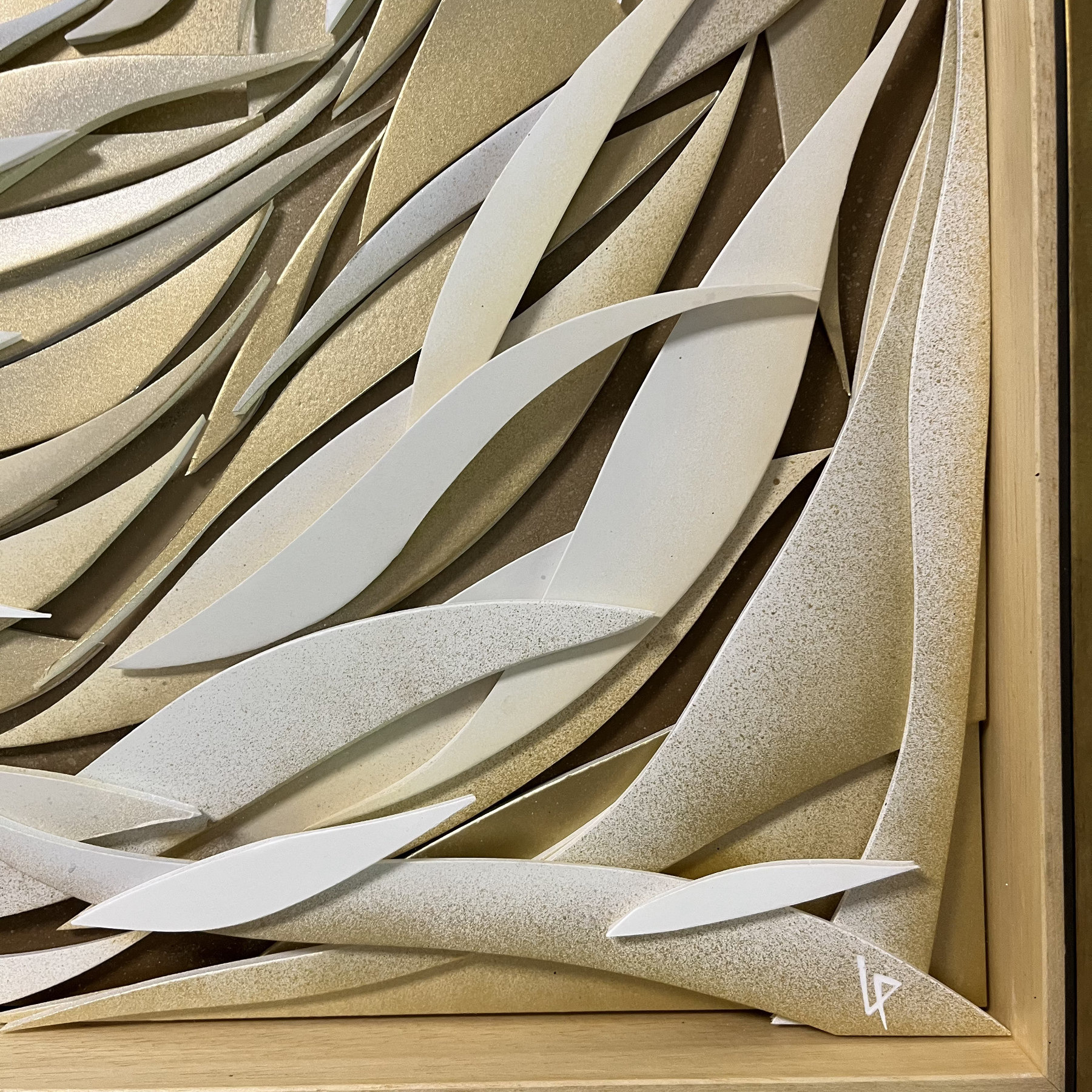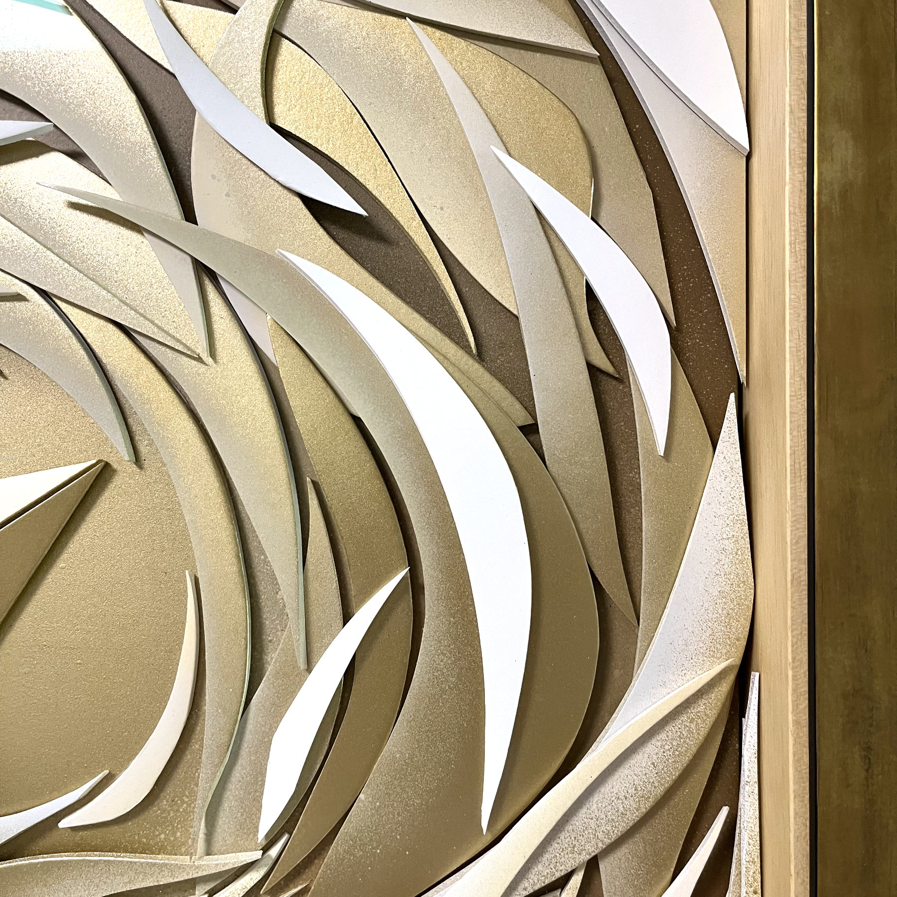 « Ondine 3 » – 48/50 cm – carton plume et peinture aérosol sur bois – encadrement or et sous-verre musée – disponible